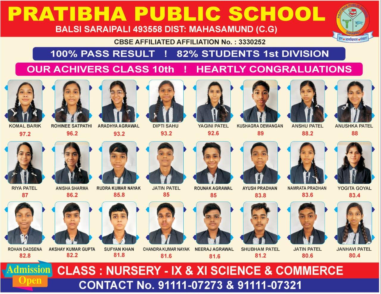 आयुष साहू 9926141516: सरायपाली (बालसी): सीबीएसई कक्षा 10वीं के परीक्षा परिणामों में प्रतिभा पब्लिक स्कूल, बालसी के विद्यार्थियों ने शानदार…