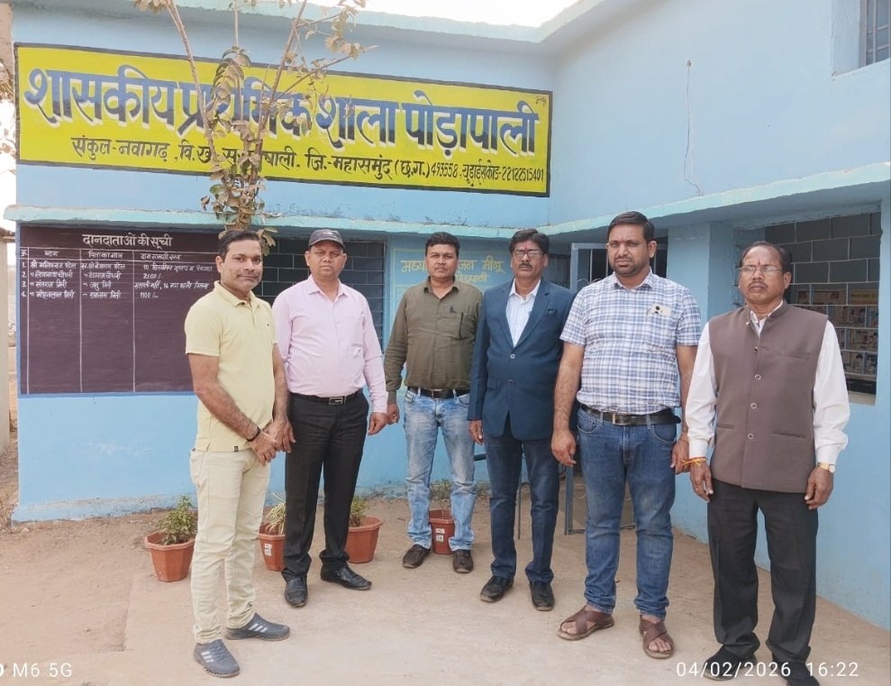 सरायपाली//आयुष साहू 9926141516: आज दिनांक 04/02/2026 को नवागढ़ संकुल आश्रित शासकीय प्राथमिक शाला पोड़ापाली में विकासखंड शिक्षा अधिकारी सरायपाली श्री…