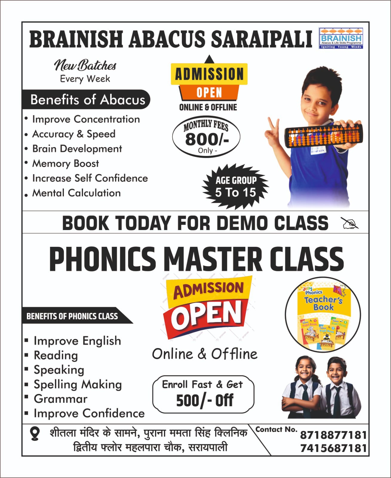 आयुष साहू 9926141516: ब्रेनिश अबाकस में हर वर्ष की भांती इस वर्ष भी प्रवेश प्रारंभ हो गया है जिसमे 30…